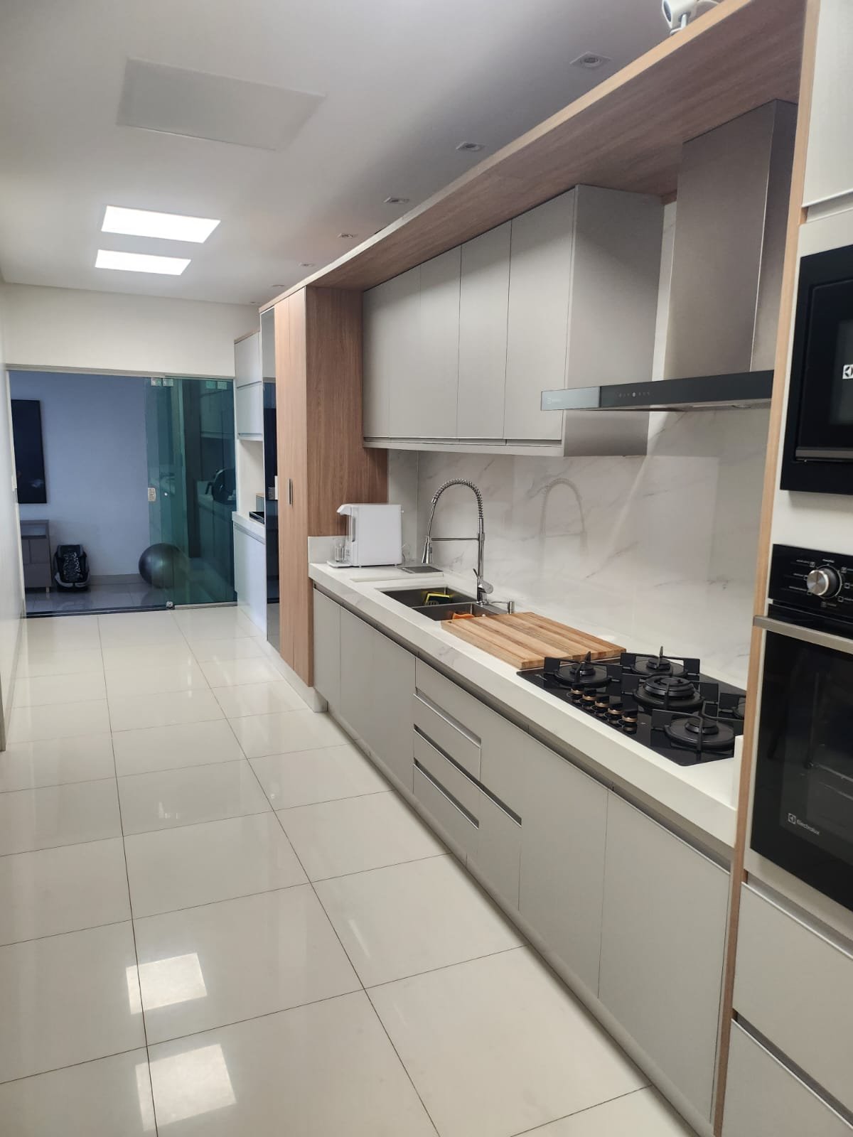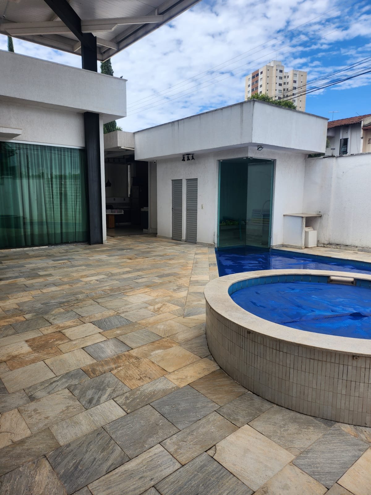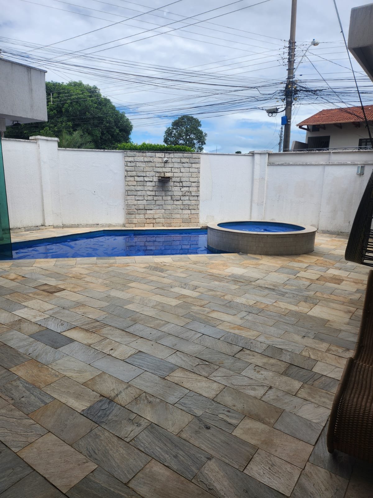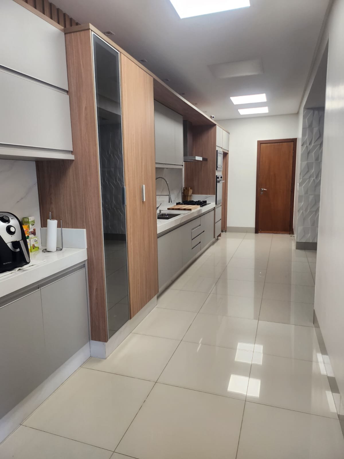 Descricao: Casa de esquina com: Hall de entrada, lavabo, sala de visitas para 2 amplos ambitentes, sala de jantar, cozinha completa em armários, com água quente, 3 suítes a principal com closet e banheira, escritório grande. Cozinha gourmet completa em armários, piscina, sauna, jardim e garagem; Poço semi artesiano.