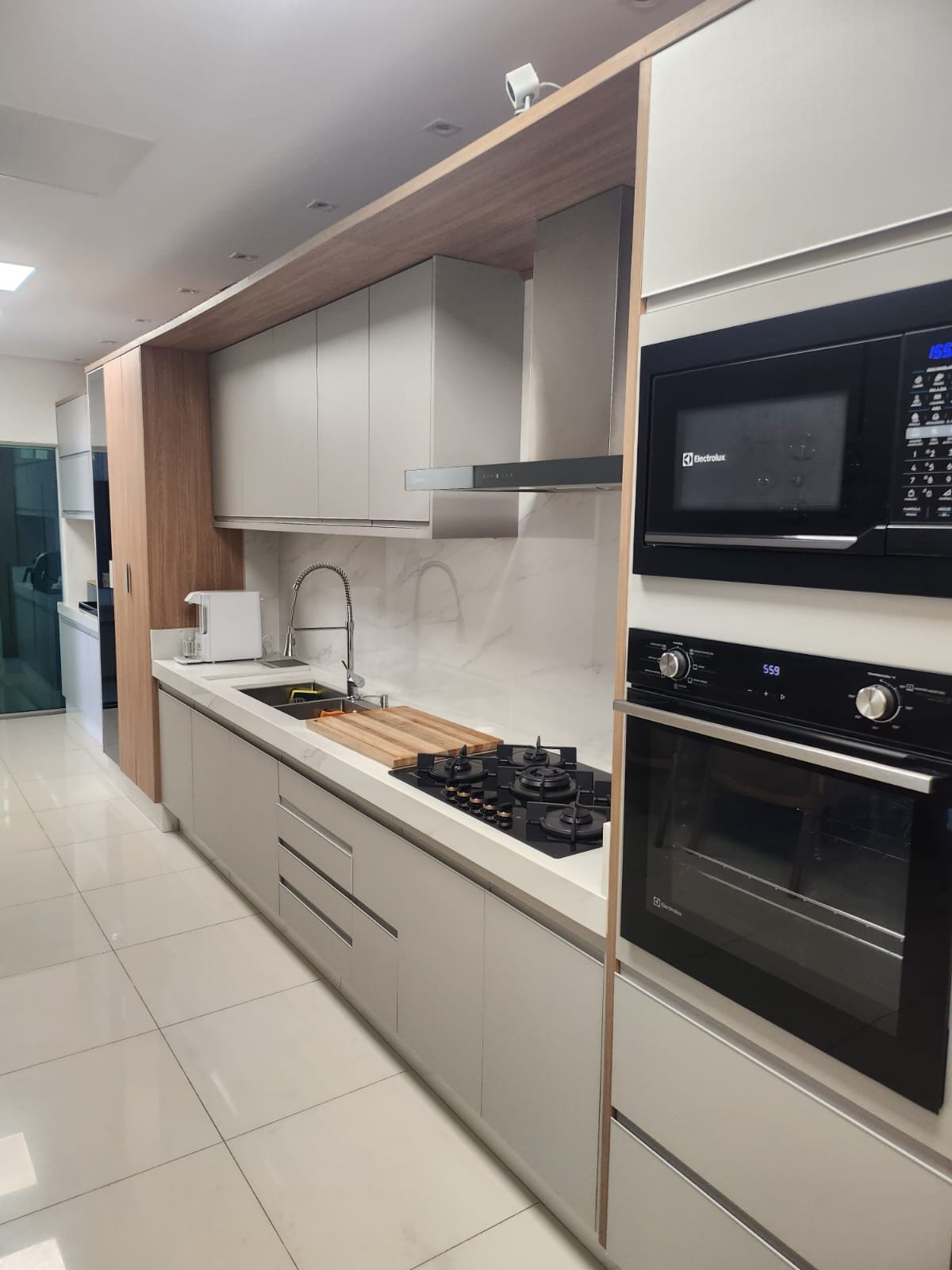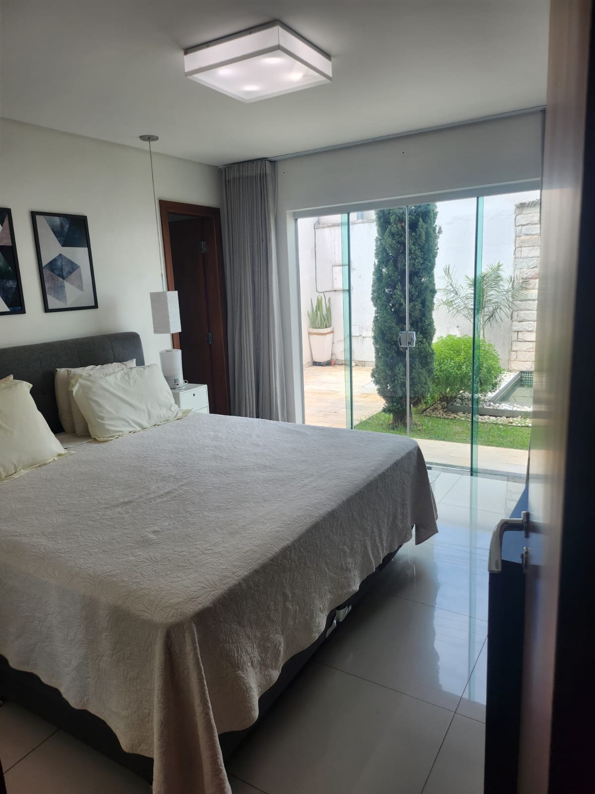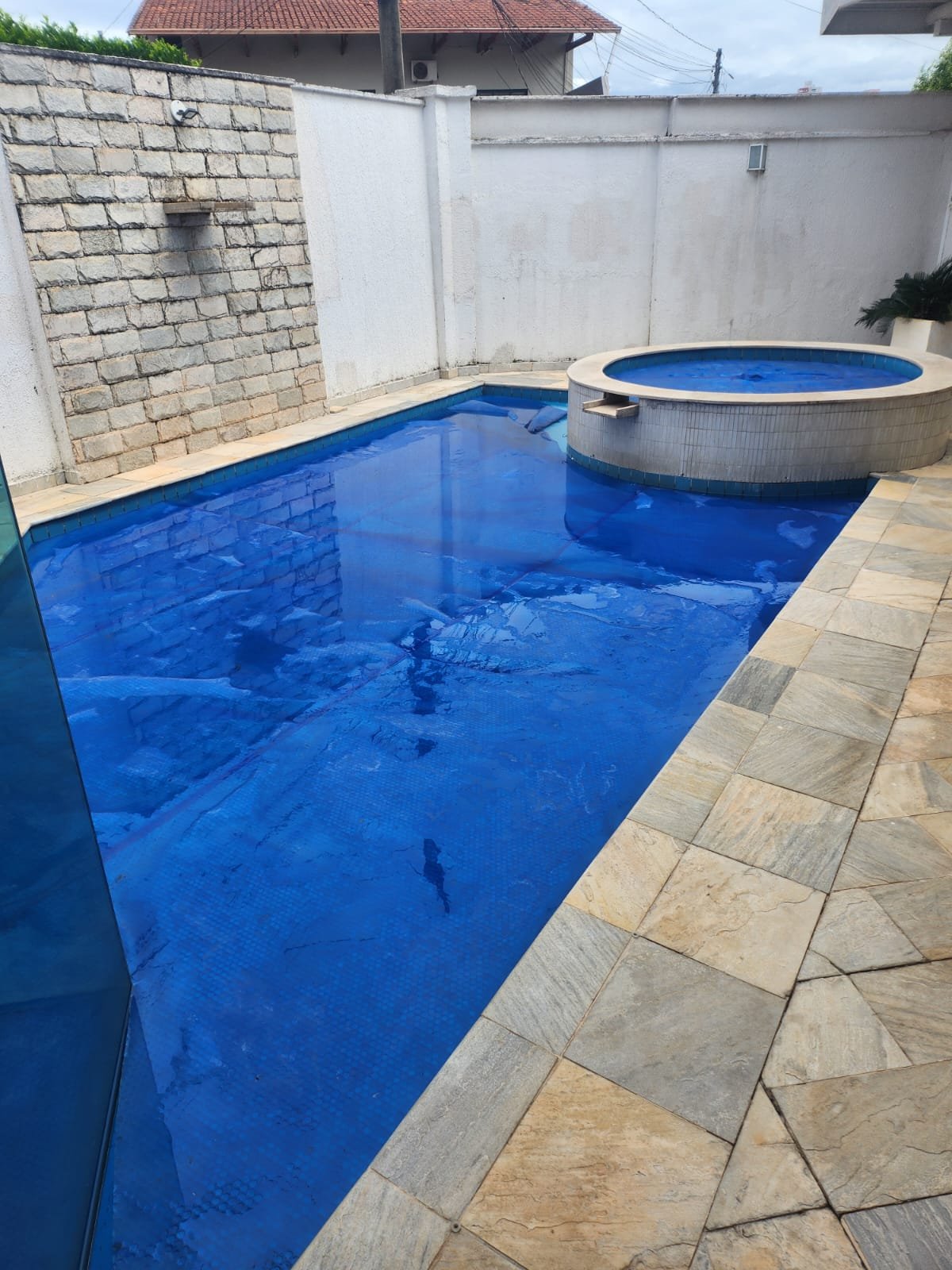 Descricao: Casa de esquina com: Hall de entrada, lavabo, sala de visitas para 2 amplos ambitentes, sala de jantar, cozinha completa em armários, com água quente, 3 suítes a principal com closet e banheira, escritório grande. Cozinha gourmet completa em armários, piscina, sauna, jardim e garagem; Poço semi artesiano.