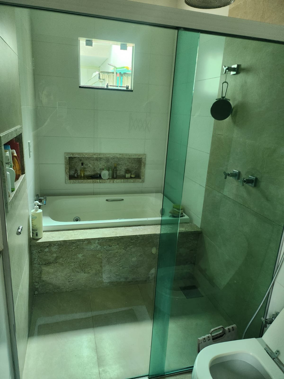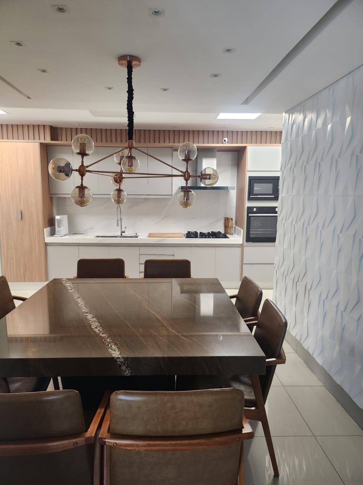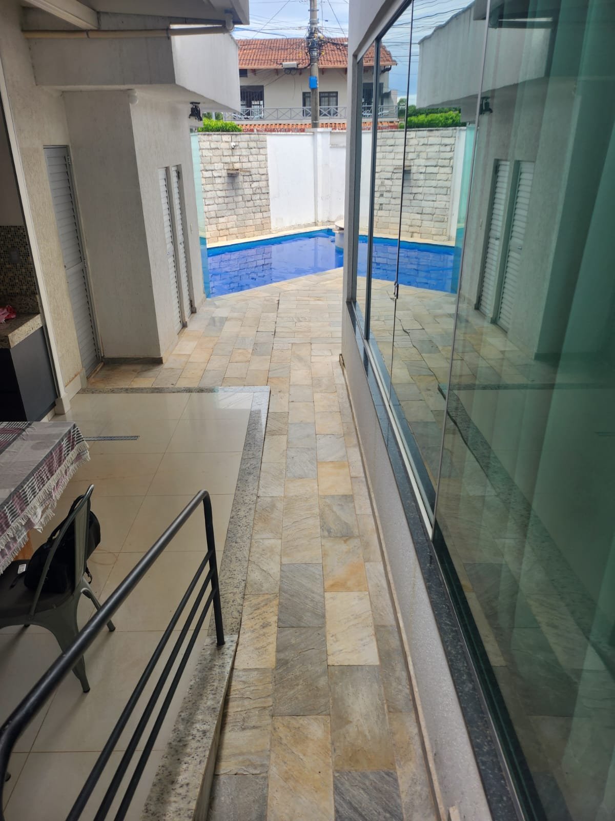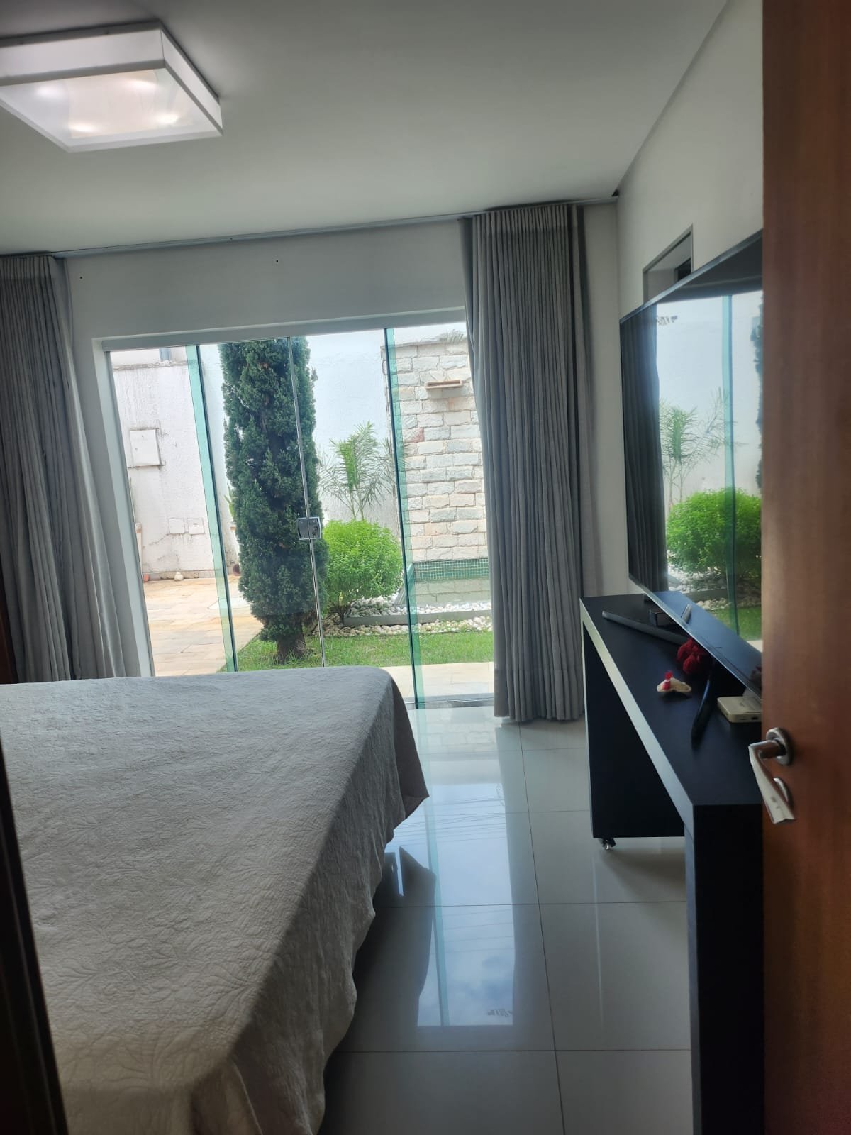 Descricao: Casa de esquina com: Hall de entrada, lavabo, sala de visitas para 2 amplos ambitentes, sala de jantar, cozinha completa em armários, com água quente, 3 suítes a principal com closet e banheira, escritório grande. Cozinha gourmet completa em armários, piscina, sauna, jardim e garagem; Poço semi artesiano.