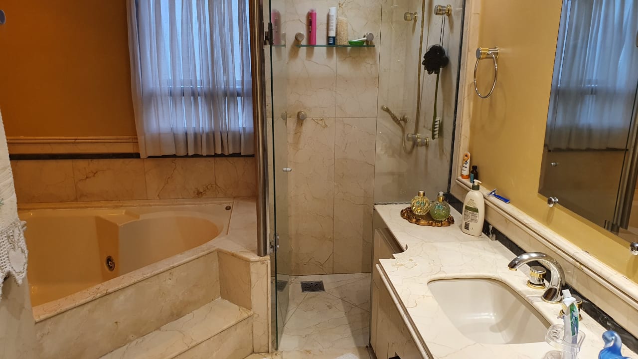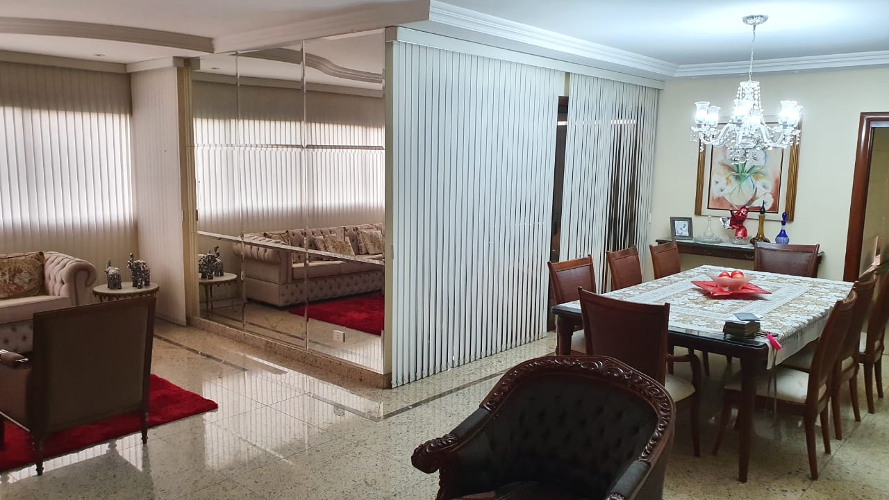 Descricao: Hall de entrada, escritório, sala para 2 ambientes, sala de jantar, varanda, sala de TV, 4 suítes, a principal com closet, duas com banheira, sala de almoço, cozinha, área de serviço, DCE, 4 vagas de garagem individuais. Armários em mógno, banheiros com bancadas em mármore crema e carrara.